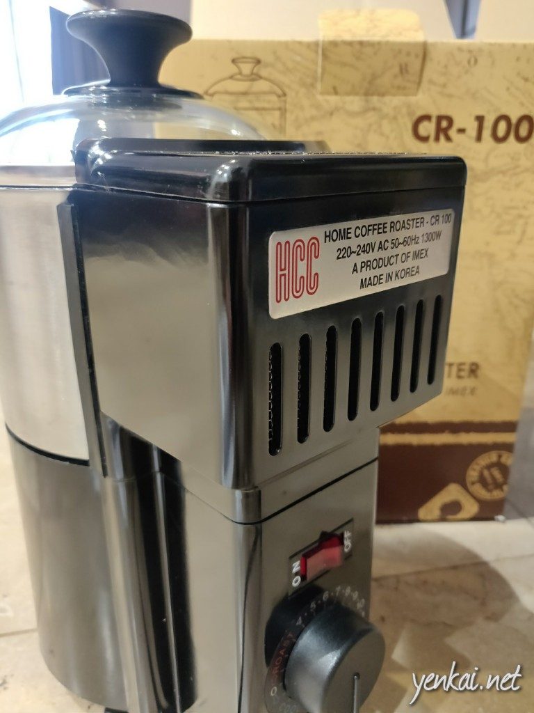Doing home coffee bean roasting isn’t so popular in Singapore, so it’s not easy to buy a home coffee bean roaster machine. Thanks to Qoo10, we have access to Korean made machines, and Imex is an established brand. Specifically, the CR-100 is a good entry level bean roaster. It is a fluid bed roaster (hot air keeps the beans moving while roasting), which is supposed to produce an even roast.